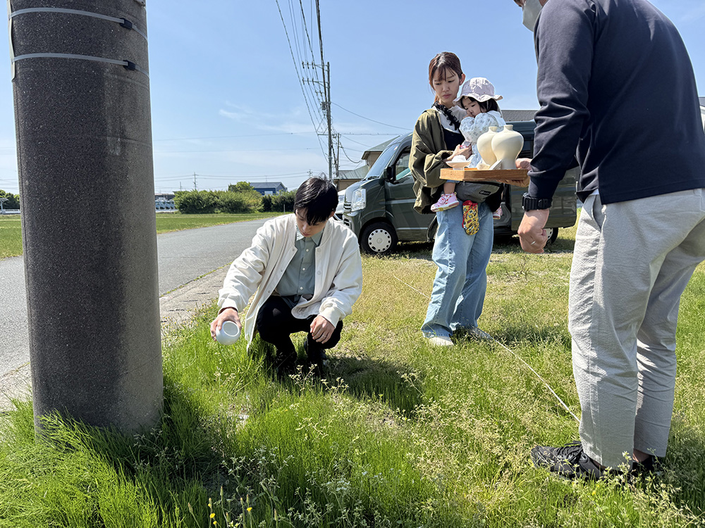 最後にお酒、お塩、水を敷地の四方にまきました。