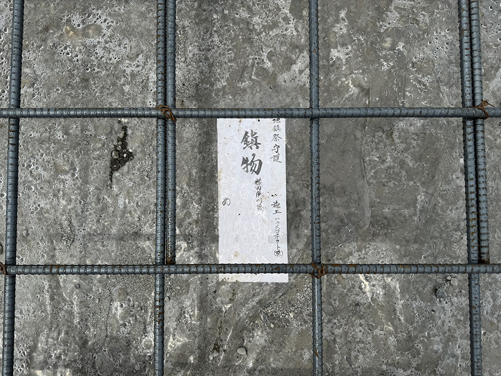 地鎮祭の際に神主さんからお預かりした鎮め物を工事の無事の完成とお引渡し後のI様ご家族の幸せを祈りながら建物の中心に埋めました。