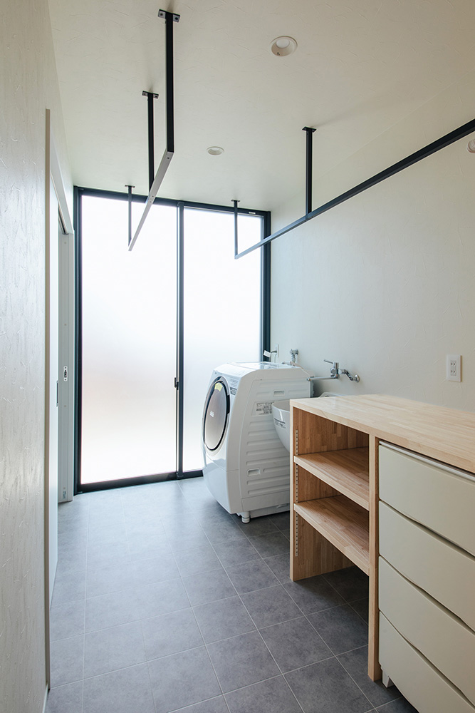 ランドリースペースでは、部屋干しはもちろん、外干しもすぐ出来るように計画してくれました。