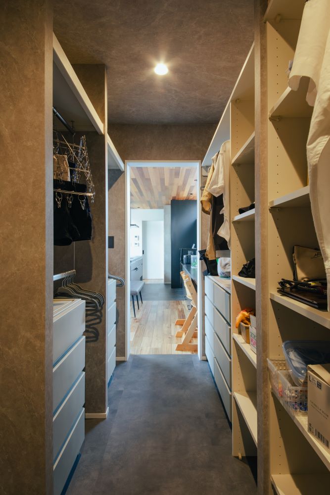4畳のファミリークローゼットにもアクセスしやすく、「洗う・乾かす・収納する」を一か所で完結出来るので時短に繋がりほんとに楽になりました!